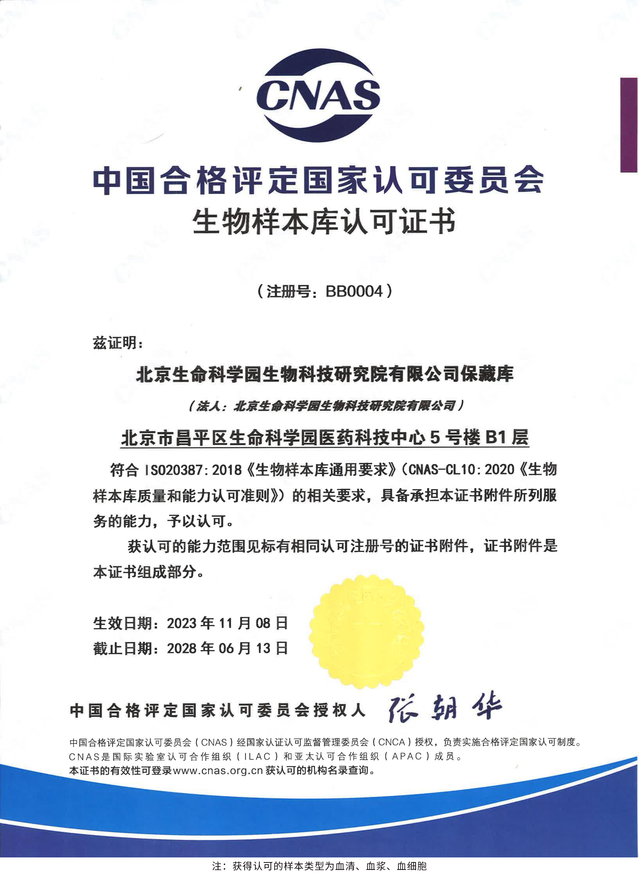 北京生命科學(xué)園生物科技研究院(以下簡(jiǎn)稱“北京生物樣本資源庫(kù)”)(Biobank of Life Science Park,簡(jiǎn)寫“BoLSP”)是一家由北京市科委和中關(guān)村生命科學(xué)園共同支持設(shè)立的第三方生物樣本庫(kù)公共服務(wù)平臺(tái),秉承北京重大疾病臨床數(shù)據(jù)和樣本資源庫(kù)(以下簡(jiǎn)稱“北京庫(kù)”)(Beijing Biobank of Clinical Resources,BBCR)十余年的發(fā)展成果,聚合眾多臨床樣本專家的專業(yè)共識(shí),致力于在生命科學(xué)、生物醫(yī)藥研究領(lǐng)域發(fā)揮銜接樣本資源持有者與研究者的橋梁作用,解決生物樣本資源開(kāi)發(fā)上下游信息不對(duì)稱、資源共享困難等問(wèn)題。研究院在北京中關(guān)村生命科學(xué)園昌平園區(qū)建立了2000㎡生物樣本庫(kù),最大存儲(chǔ)規(guī)模達(dá)1000萬(wàn)份。研究院遵循CNAS-CL10:2020《生物樣本庫(kù)質(zhì)量和能力認(rèn)可準(zhǔn)則》,同時(shí)結(jié)合北京庫(kù)過(guò)去十年的工作經(jīng)驗(yàn)與教訓(xùn),建立了一套完善的生物樣本保藏質(zhì)量管理體系,從人、機(jī)、料、法、環(huán)、控多個(gè)角度,實(shí)現(xiàn)生物樣本保藏過(guò)程的全面質(zhì)量控制,先后獲得國(guó)家科技部頒發(fā)的人類遺傳資源保藏行政許可證書和中國(guó)合格評(píng)定國(guó)家認(rèn)可委員會(huì)(China National Accreditation Service for Conformity Assessment,CNAS)頒發(fā)的“CNAS認(rèn)可證書”。